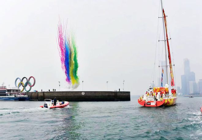 3月22日,随着欢迎礼花,“青岛号”大帆船抵达青岛奥帆中心,荣归母港。记者了解到,“青岛号”是以青岛命名的帆船。从出海至青岛的这一赛段,“青岛号”取得第三名的好成绩。
