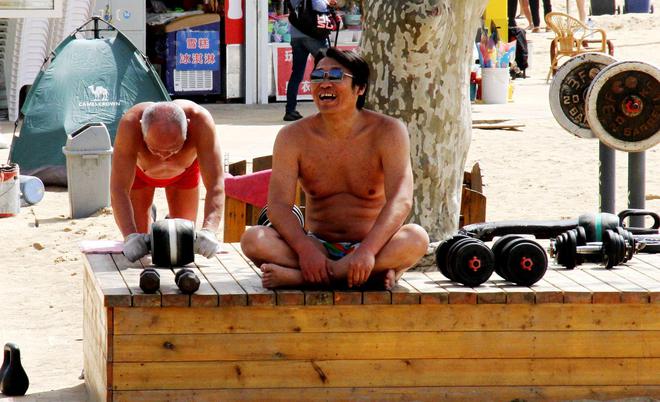 4月10日,青岛第一海水浴场的沙滩上,灿烂的笑容洋溢在“巧克力大爷”的脸上。青岛,除了有海天一色的美景,以及“人从众”的游客,还有“巧克力大爷”。无论春夏秋冬,漫步青岛浴场海滩,都会碰到一群皮肤黝黑、身材健硕的大爷,成为海滩一道独特的风景线。他们大多已退休,海水浴场成了他们的另一个家园。