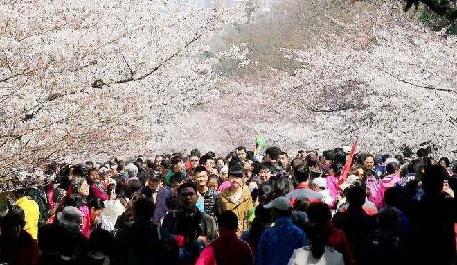 4月13日,青岛中山公园樱花大道单樱怒放,吸引来众多市民游客赏樱踏春。每逢四月初春,青岛的樱花灿烂盛开,整座岛城就变成了花浪滔滔、落英缤纷的花海。
