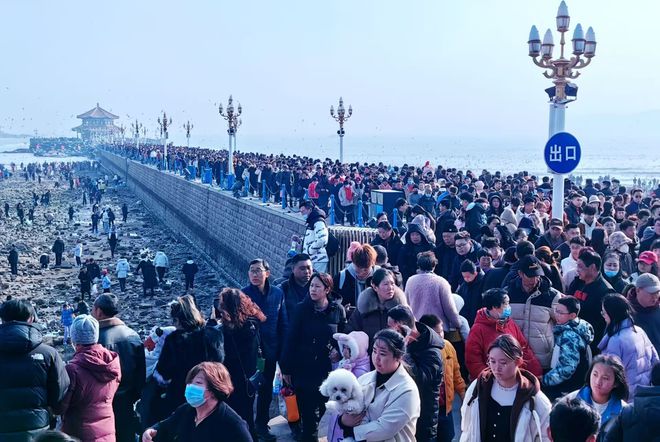 2月13日,大年初四。青岛栈桥景区内游客爆满。由于桥上人太多,游客只能缓慢移动脚步前行。据悉,春节长假期间,全国各地景区游客爆满,纷纷迎来客流高峰。