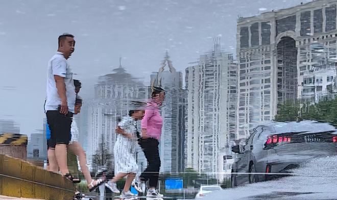 7月17日,持续不断的降雨将城市的路面变成一面面“镜子”,让我们看到城市的另一面。