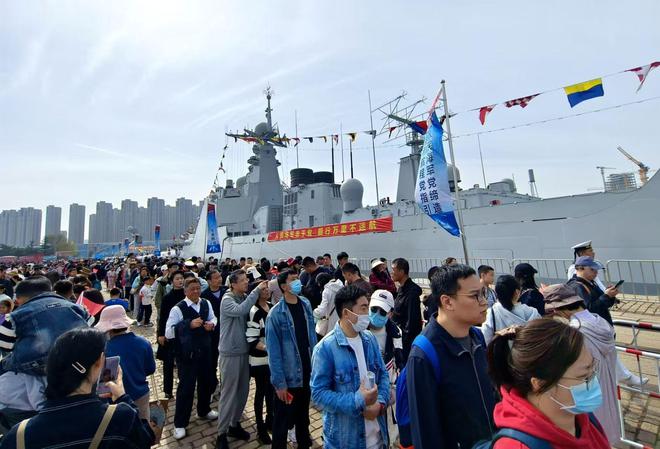 4月20日,2024年海军成立纪念日舰艇开放活动在青岛港3号码头举行。码头上,石家庄舰、贵阳舰、可可西里湖舰、洪泽湖船集中亮相,前来参观的市民游客络绎不绝,只为亲身感受海军舰艇的风采和魅力。