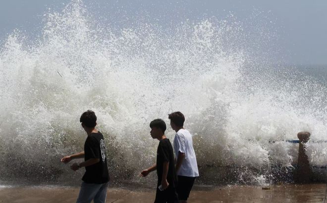 7月28日上午,台风“格美”影响我市,沿海一线的巨浪拍上岸来,与市民来了个近距离接触。