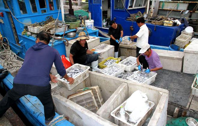 9月1日,黄渤海伏季休渔季结束。小港码头,船老大将各类刚刚捕捞的海鲜搬运上岸。