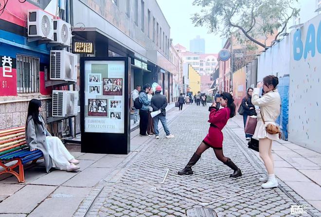11月22日,冬日里的上街里·银鱼巷游人络绎不绝,装扮时尚的年轻人在这里打卡拍照。自2019年改造完成后,银鱼巷迅速成为时尚潮流的网红打卡胜地。
