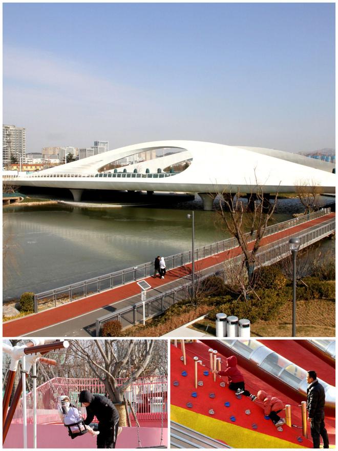12月27日,冬日的张村河片区。崂山区将整个张村河片区作为公园打造,如今张村河生态修复和环境整治提升一期工程开放后,“城中村”已变“景中城”。