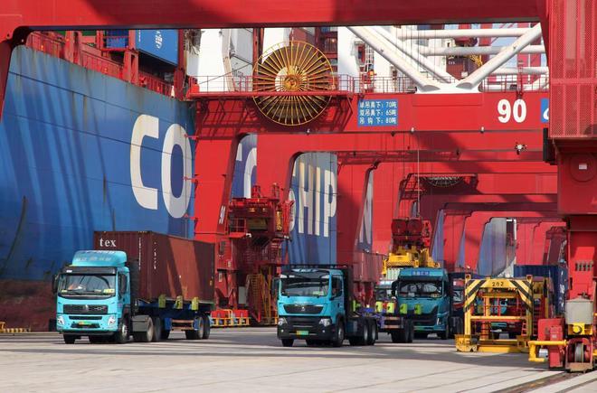 9月29日,山东港口青岛港前湾港区一片繁忙景象,汽笛声、对讲声、设备声此起彼伏,大型设备、“新三样”产品、各种食品、工业品正紧张地进行装卸。