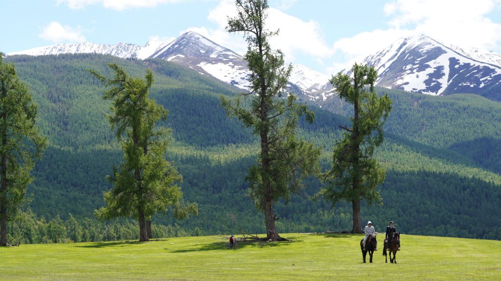 6月4日,在新疆阿勒泰地区哈巴河县,游客在骑马游玩。(新华社记者 阿曼 摄)