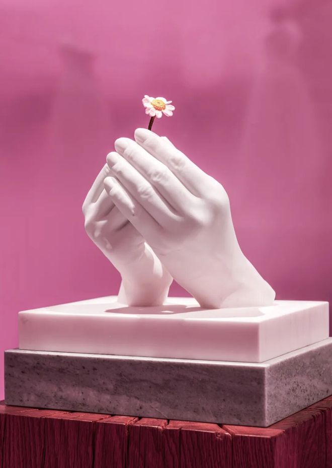 艾敬为迪奥特别创作的雕塑作品《花的力量 》,作品灵感源自迪奥先生心爱的妹妹卡特琳娜·迪奥的传奇故事,以双手托举花朵的意象,致敬独立女性的勇敢无畏、向爱而生 。