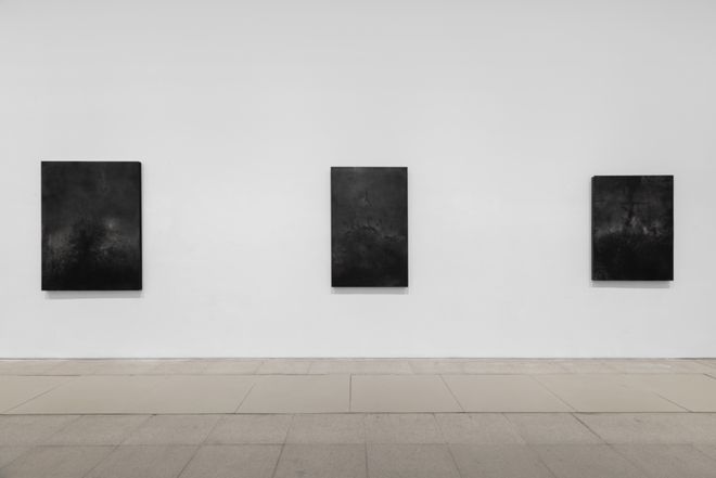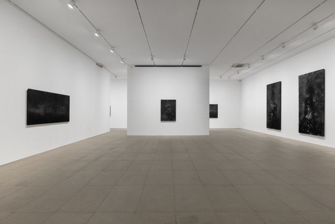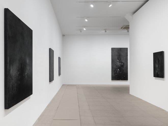 11月7日至12月27日,王家增个展“物的竞赛游戏”在白盒子艺术中心展出,展览由汪民安担任学术主持,展出艺术家近期的创作实践。延续以金属材料为主材的方法,油墨在铝板上流动、生成、浸染、覆盖,随着铝板表层的细微起伏而变化,也就此铺开了深浅不一的黑白世界。