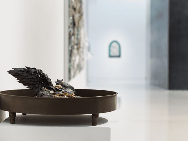 在董琳的作品中,花木禽石不再是被凝视的客体,而是情感与信念的外显。她从古代神话和民间造型里汲取意象,将沉淀着集体记忆的中国传统符号,转换为全新的艺术语汇,使之脱离陈旧的叙事模式以融入当下的生命体验。那棵隐于岩中的花树,既为古意的回响,也是心灵自证的隐喻。在坚硬的磐石之间,柔软仍得以破土,在世俗的重压之下,信念和温度依旧顽强地生长。