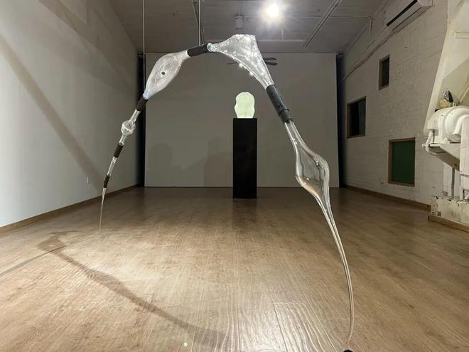如果将空间比喻为身体,作品就是身体内不可或缺的骨骼、血与肉。艺术家在景德镇手工创作的玻璃器、陶器,有的散落在蔡锦空间内1950年代的老设备上,有的重组为混杂着脆弱的玻璃、强硬的金属构件、散发铁锈气味的雕塑装置,成为21世纪新的“肉身”。他们共同指向徐丝易一直以来关注的问题——个体存在与空间和时间之间的现象学关系,以及地理哲学与物质文化的关联。