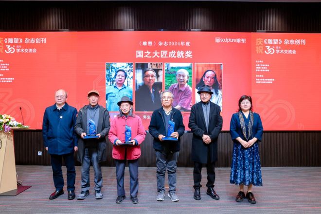 《雕塑》杂志社主编朱尚熹介绍了“《雕塑》杂志2024年度‘国之大匠成就奖’”的评选情况。颁奖环节中,吴为山、曹春生、朱炳仁、比利·李等十位代表获得“特殊贡献奖”;“2024年度奖”涵盖公共艺术、原创雕塑、泛雕塑艺术等六个类别,刘远长、郭宝寨、宋培伦等艺术家荣获“国之大匠成就奖”。
