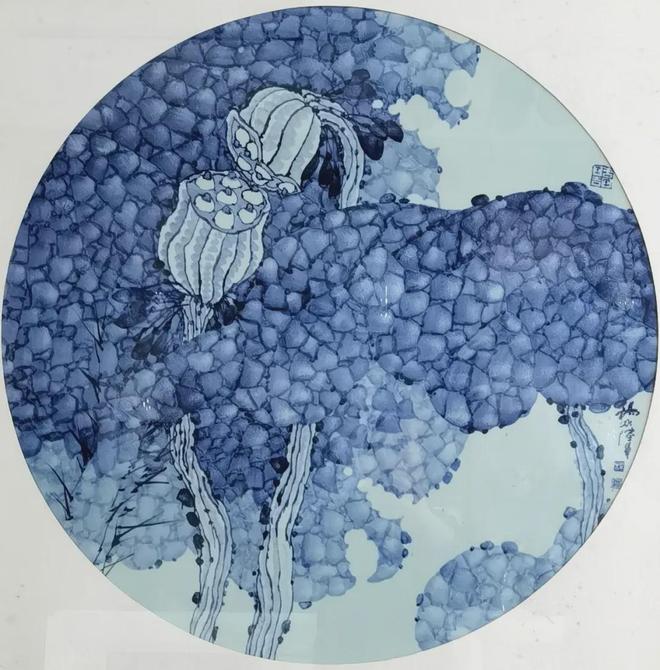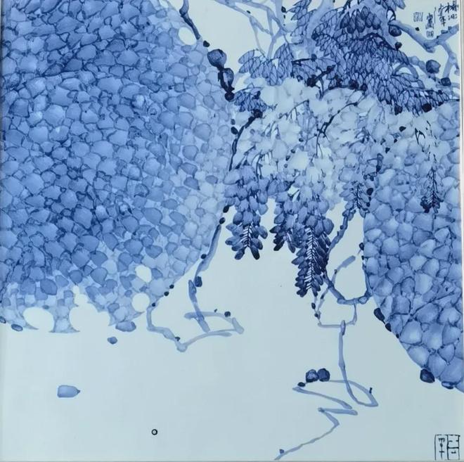 这场对话,清晰地标定了杨冰艺术的文化坐标。她的根,从未离开过东方美学的土壤。她运用传统中国画的笔意勾勒枝干,坚守着青花“素肌玉骨”的纯正气质,却又在“分水”的疆域里策马奔腾。她将青花料当作水墨与油彩的结合体,在瓷板上营造出兼具黄宾虹山水之“浑厚华滋”与现代抽象构成之张力的独特境界。