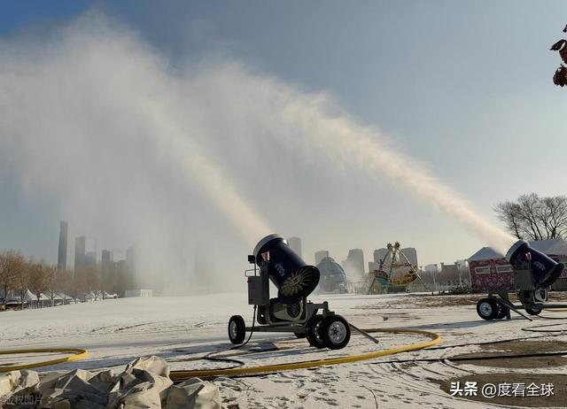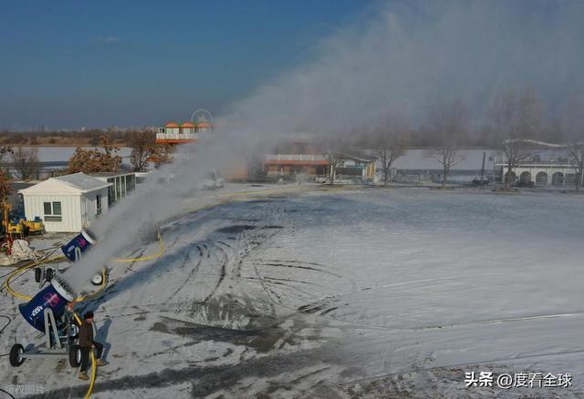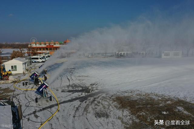 在群力江畔的雪人码头,记者看到,四台造雪机呈一字排开,巨大的出风口不断喷出白色的雪雾,工作人员正穿梭在造雪机之间,不时检查设备运行情况,同时规划着雪堆的堆积范围。“我们从11月28日就开始调试设备了,30日正式进入全力造雪阶段。”景区相关负责人介绍,目前造雪工作采用24小时不间断模式,每台造雪机每小时的造雪量可达20立方米,按照这个进度,预计一周内就能完成网红大雪人的基础雪量储备。