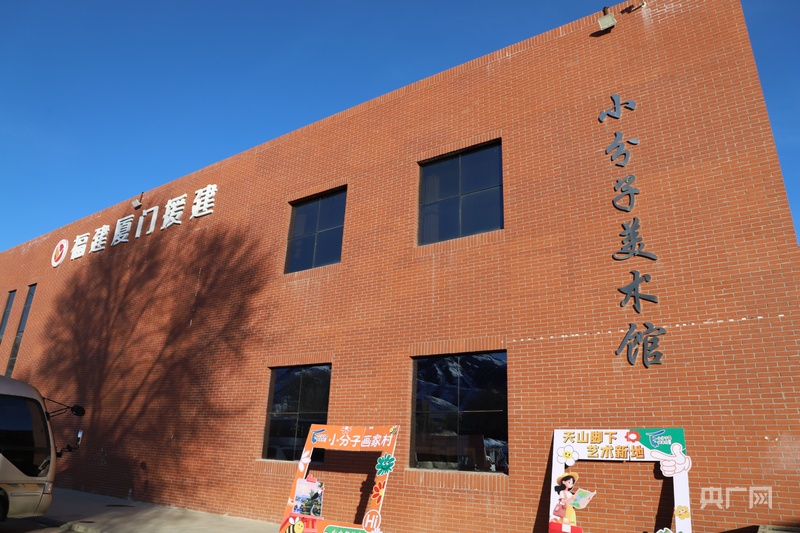 “小分子美术馆是全疆首个村级美术馆,它是在2017年借助咱们的援疆资金完成建设的。今年7月我们组织驻村艺术家举办了‘诗画乡村’——小分子画家村驻村艺术家作品展,目前已球速体育Welcome在乌鲁木齐,昌吉等地展出,现阶段是在厦门进行展出。”新地乡副乡长马咪娜介绍,目前已经入驻6大类36位艺术家,建成艺术家工作室集群,驻村艺术家积极参加乡村建设,为村民的民宿建设出谋划策。