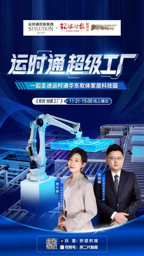 在此背景下,环球时报《你好,创新工厂》节目组于近日走进运时通华东软体家居科技园——运时通华东工厂。深入探索这座超级工厂的科技创新及其为国人健康睡眠发展所提供的优质产品解决方案。