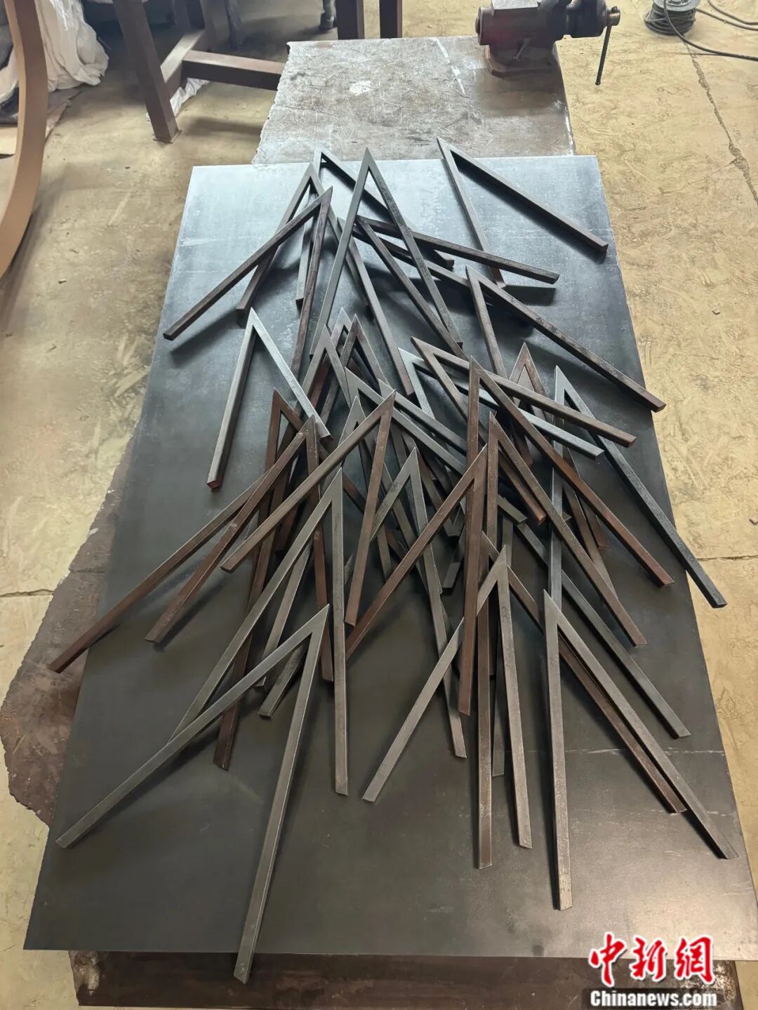 借助这个契机,我也在思考数学中的自由及有关“混乱”的理念,即在不受控制的情况下进行艺术创作。我的重要作品《倒塌》就是对这些思考的实现,也是我对重力决定雕塑形式的探索。作品中的钢制线条在不受控制的情况下倒塌,有了多种变幻莫测的可能,我期望它们展现出一种无比例、非构造且不可预设的艺术性。这些作品在我所有雕塑中最具创造力。