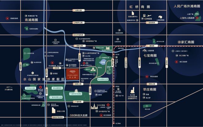 【教育资源堪称“名校矩阵”】常青藤双语幼儿园、励滕伯克曼国际学院、阿德科特国际学校、领科双语学校(规划)、佘山外国语实验学校、松江大学城(温馨提醒:本案为商业性质,仅提供周边学校信息,非对口学校配套)
