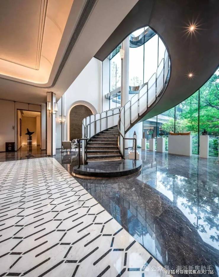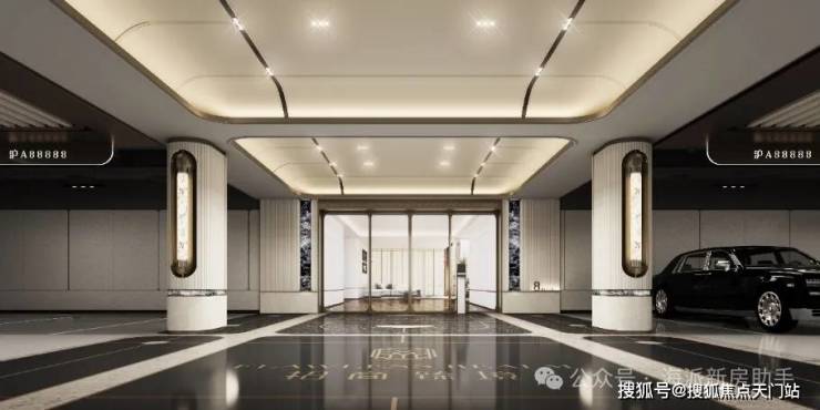 地库入户大堂公区打造,招商臻境同样也极尽匠心,吊顶上采用了具有海派风格的内凹式弧面造型;廊柱腰线以及门边运用奢石点缀,柱子与柱体采用精致的弧形倒角设计,庄重而不失典雅。