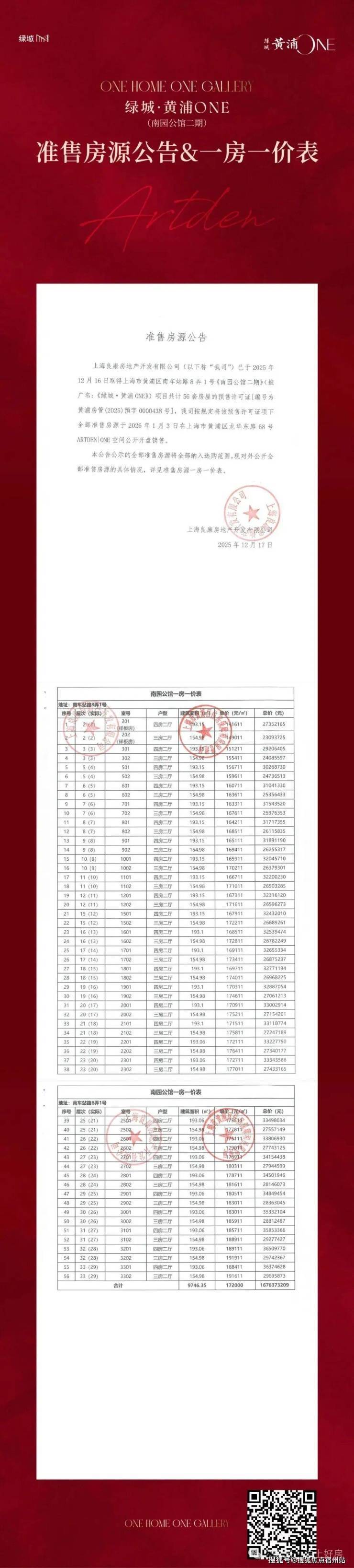 据悉【绿城黄浦ONE】二期加推建面约155-193㎡3-4房(高层),均价17.2万/㎡,总价约2300万起,收官56席,不容错过!项目接待中心持续开放中,样板间已开放!