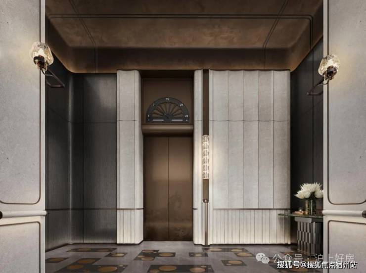 电梯厅的宠物识别按钮是艺术家定制款;入户门把手出自艺术家刘建华之手,用整块实心铜锭经锻造、打磨、电镀等多道精密工艺制成,握住的瞬间就是与艺术的触碰