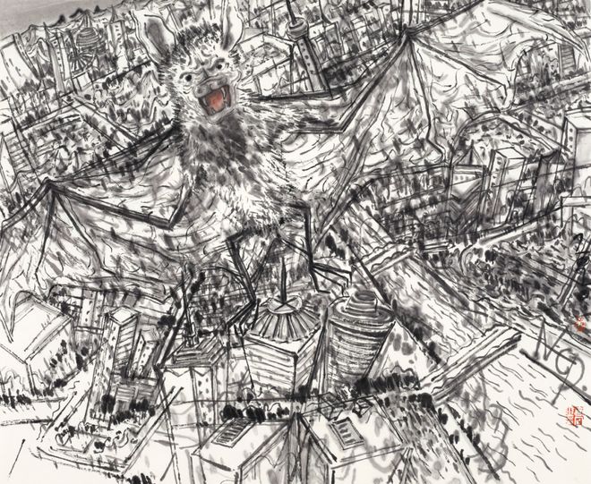 库:经历了从人性探索、社会批判到存在哲思的历程,并尝试了多种媒介,您认为“水墨精神”在您艺术中的核心体现是什么?它如何在快速变化的科技和文化语境中保持其独特价值和生命力?您对未来水墨艺术的可能方向有何预见?