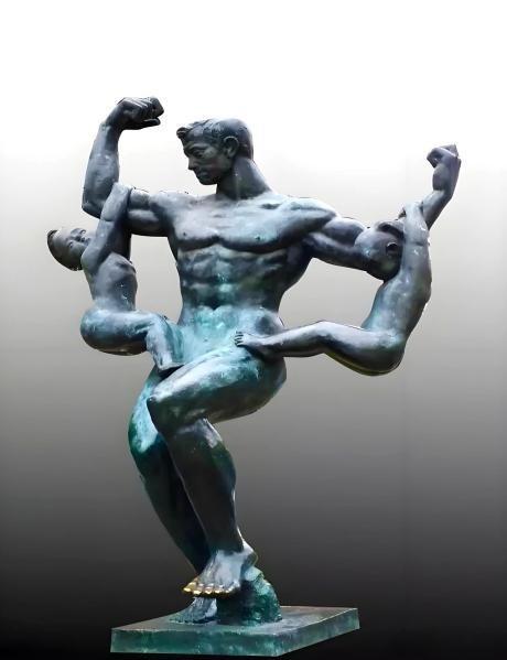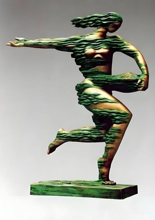 在形式上,他常打破传统雕塑的静态感。传统雕塑往往给人一种静止、凝固的感觉,而徐晓虹先生的作品却充满了活力和动感。他通过曲线、孔洞或层叠结构,赋予作品轻盈的动态和呼吸感。就像《奋力一掷》这件表现体育精神的作品,运动员的身体曲线如同优美的弧线,充满了力量感和速度感;作品中的孔洞和层叠结构,仿佛让运动员在运动中产生了一种轻盈的动态,展现出一种昂扬向上的时代精神。还有矗立于上海南京路的青铜群雕《天之六骏》,六匹马的造型各异,身体曲线相互呼应,仿佛在奔跑、在嘶鸣。这些作品,洋溢着奋进、拼搏的活力,呼应着改革开放以来蓬勃向上的时代风潮。