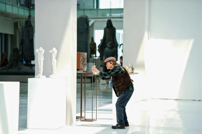 金属材质在展览中呈现出冷峻而富有工业感的审美气质。《角色》以木材与金属材质结合,展现自然与工业材料的反差,鲜亮稳重的配色贴合戏曲形象。《百年巨匠》以铜质写意手法塑造二十世纪初中国画坛艺术巨匠的形象,其造型语言与文人画的写意精神一脉相承。