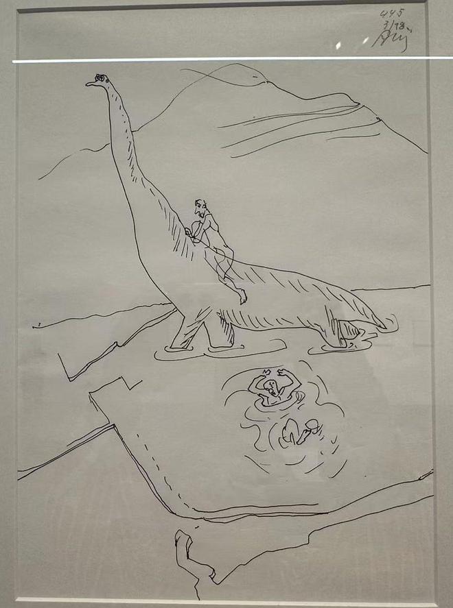 正如展览最初呈现其少年时期的绘画作品、以及大量建筑手绘画稿,艺术创作从儿时想要成为雕塑家开始,几乎贯穿了西扎的人生。在“艺术创作”板块,西扎以骑恐龙的“自画像”开场,象征着建筑师原初身份的诞生。这种带有幽默感与象征意味的开场方式,既回应了“起源”主题,也将观众引入西扎独特的艺术世界。