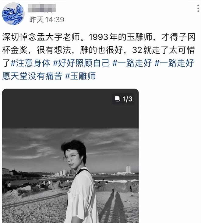 在孟大宇去世之前,他在苏州的工作室已经开始步入正轨,原本等待的他的是无限辽阔和充满希冀的未来,孰不知这样一条鲜活奋进的生命就这样戛然而止,愿孟大宇能一路走好,在另个世界继续实现自己未尽的理想。
