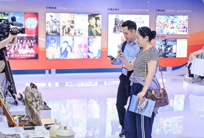 湖南馆以360平方米的展区规模,共有29家企业参展,展区设计主要围绕“悠久的历史文化、厚重的革命文化、活跃的现代文化”三大主题,系统展示了马栏山视频文创园、广电湘军、出版湘军、民间文艺非遗四大板块在版权创造、运用、保护、管理及服务全链条的创新成果。