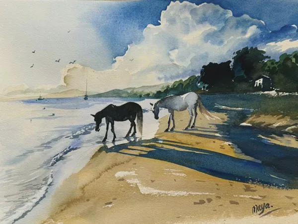 提笔时常想,这作画也如驭马:早年谨守师承法度,是握紧缰绳;后来渐能抒写己意,似信马由缰;而今笔墨随心,倒像是与良驹并肩漫步,同看一路风景了。