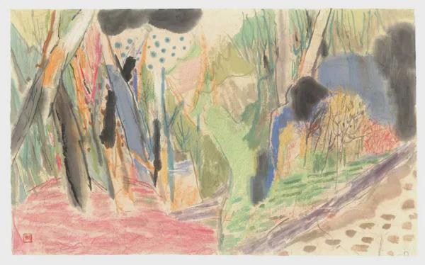 肖婷婷《无题(来自山寓系列)》 宣纸、国画色、中国墨、色粉80×55cm 2024年