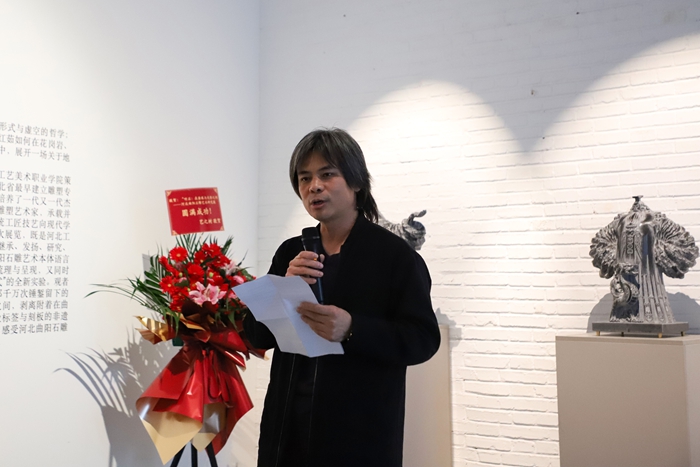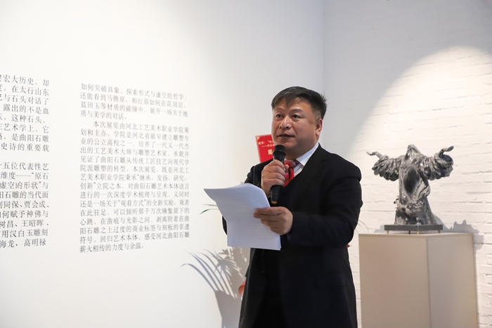 2025年12月16日,由河北工艺美术职业学院策划并主办、校长张广军担任策展人,曲阳县人民政府和河北省当代雕塑院协办的“听石:在凿痕与光影之间——河北曲阳石雕艺术研究展”在北京798艺术区萃岛画廊开幕。