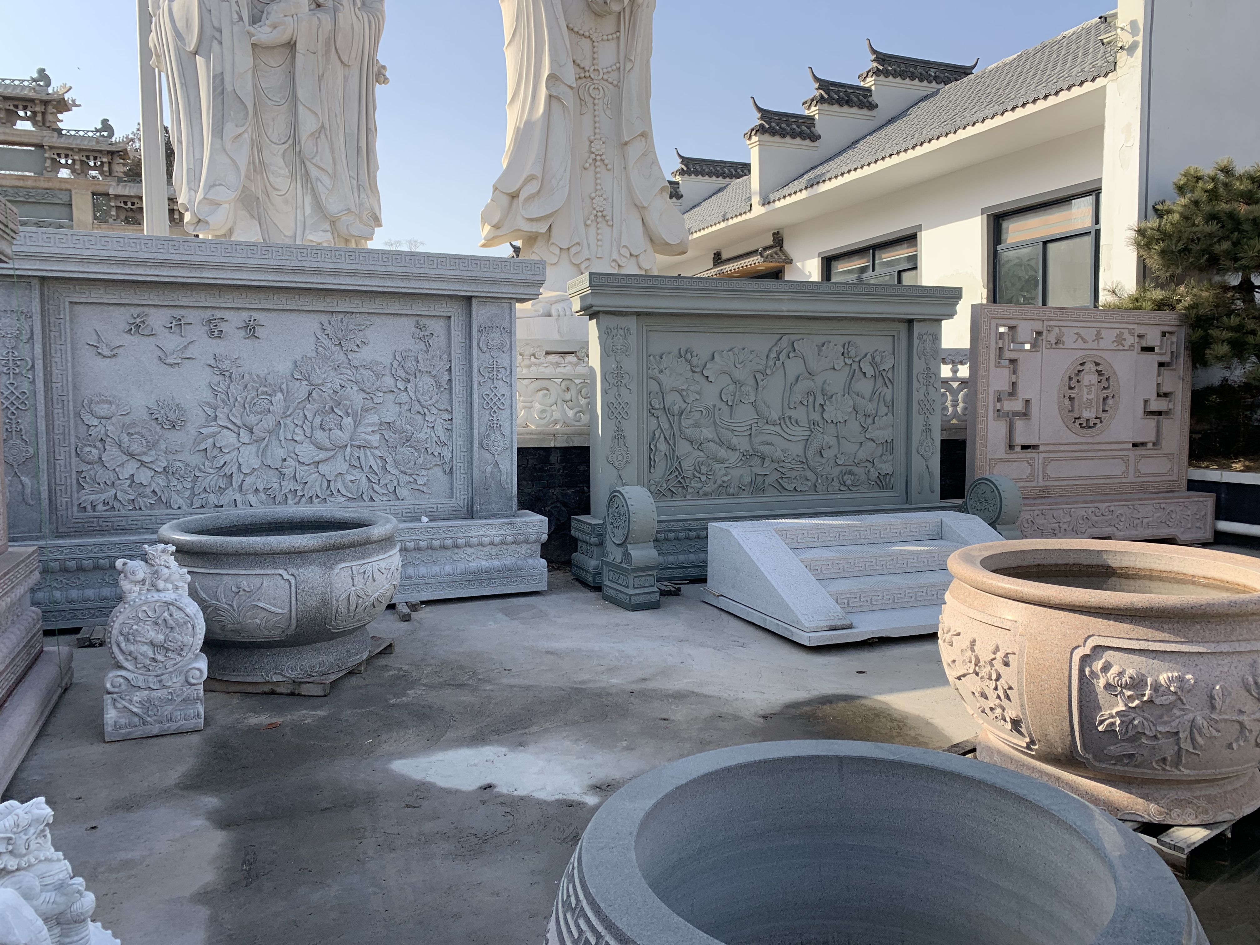 :欧式园林柱头、栏杆、花钵等标准化构件;小型宗教用石雕;墓碑与纪念性石刻。