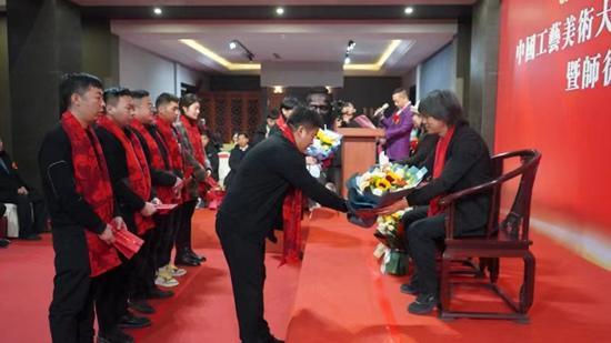 青蓝相继,赓续前行。1月10日,中国工艺美术大师、雕刻技艺传承人高英坡首次收徒仪式在翰鼎公司举行,20人被收为弟子。