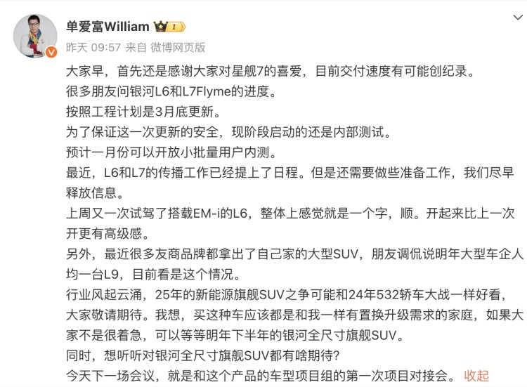 球速体育网站:明年下半年推出吉利银河也“入坑”全尺寸旗舰SUV