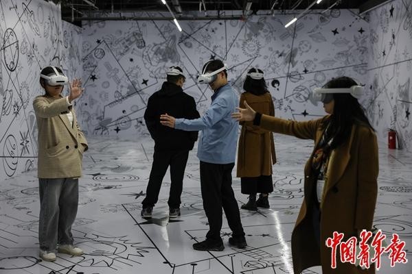 戴上VR眼镜,沉浸在虚拟空间,玩家在现实空间中的移动和动作可以同步到虚拟空间中,根据设定好的剧本进行探索和解密。“该技术可以应用在博物馆、学校和商业消费中。”从事该业务的遥在科技公司首席技术官马玉广介绍,该技术可融合文化、科技等主题,让体验者身临其境地感受其魅力。