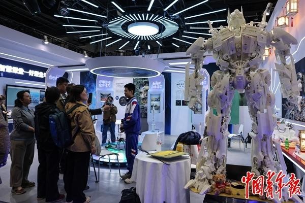 3月27日,北京,首钢园,由北大附中石景山学校高一学生共同制作的“擎天柱雕塑机器人”。