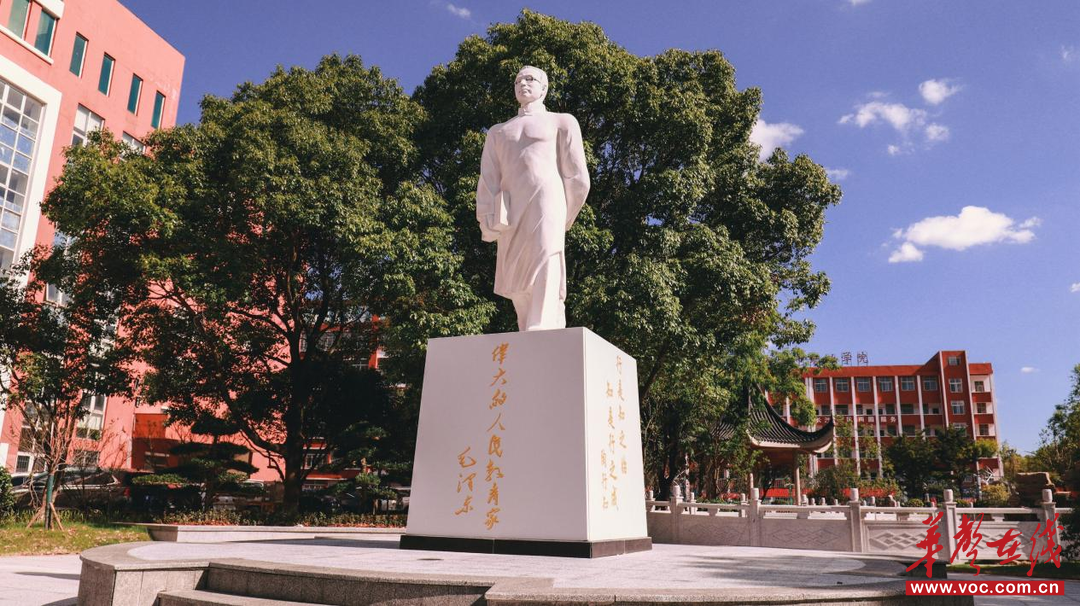 高高矗立的著名教育家陶行知雕塑,特别吸引眼球;他身后是一个开放式公园:芳草绿地环绕着一面湖水,湖中假山流球速体育官方入口水,荷叶摇曳;湖畔有一个亭子,名为“芳华亭”,以纪念学院创始人吴芳女士。