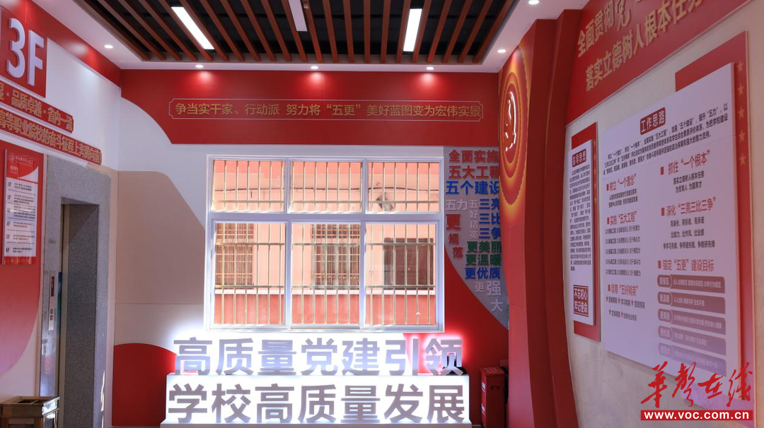 从一楼到四楼,每层楼道都有主题,相继是党的光辉历程、弘扬教育家精神、学校党建品牌建设理念、廉政文化。