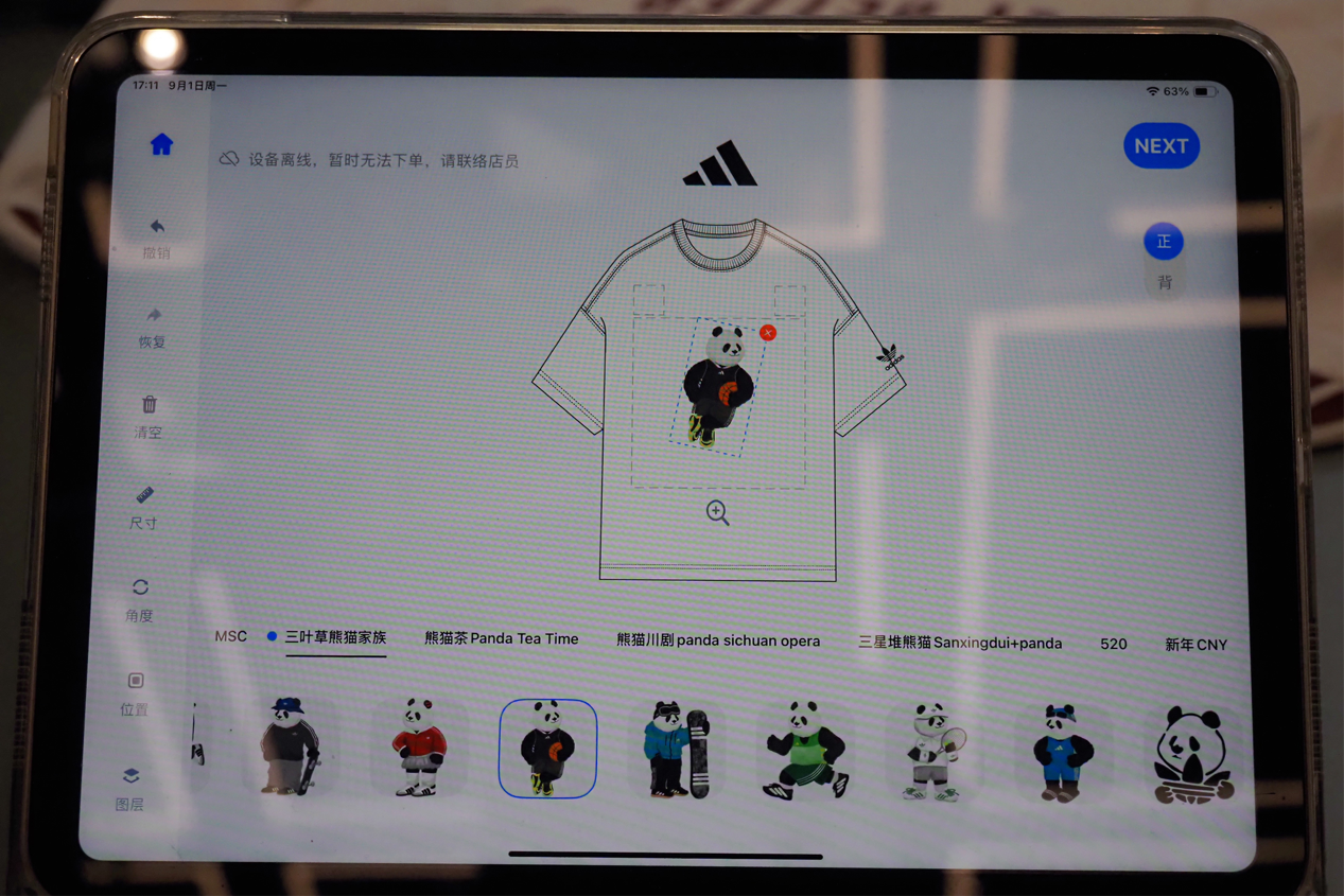 在太古里三叶草旗舰店,消费者可以按个人喜好定制熊猫元素服装 中国外文局中国网记者曹川川/摄