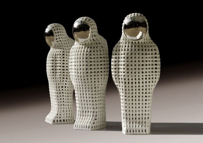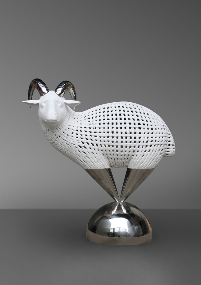 《都市田园》系列则展现了安然对现代人生存境遇的深刻观照。他将乡野中的草人、动物与植物引入都市语境,以不锈钢的冷峻与陶的温润并置,构造出一种充满张力的视觉叙事。这些作品不是简单的怀旧,而是对“失去”与“留存”的辩证思考。当田园成为记忆,当自然被秩序替代,那些矗立于都市中的雕塑便成为精神的锚点,提醒着我们与土地、与根源的深层联结。《都市丛林》借鉴传统建筑的回廊结构,以纪念碑的方式诉说怀念,实则是在追问:在高度工业化的今天,我们该如何安放那份对野趣与自由的向往?