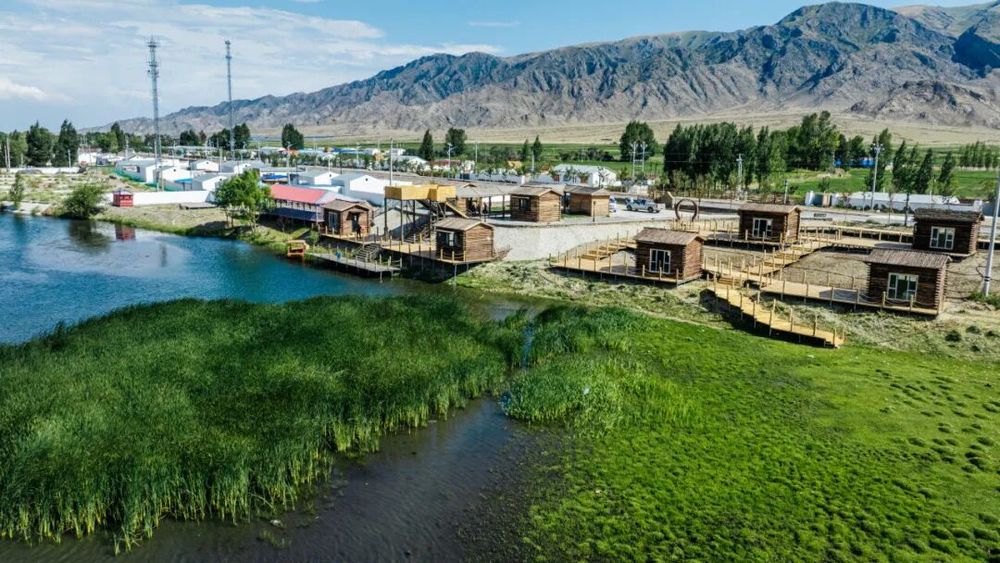 在湿地度假营地施工现场,工人正将本地松木加工成星空房框架。“这片湿地是我们的‘聚宝盆’,但以前只能看着水流走。”吐尔巴依尔指着营地规划图说,“我们没有大拆大建,而是用河滩石铺地基,用村民家里的闲置木材打造木屋和栈道,连营地入口的圆形大门都是我们用边角料拼出来的。”通过盘活集体闲置资产,这个占地20亩的营地总投入较预算减少60%,年内即可迎客。