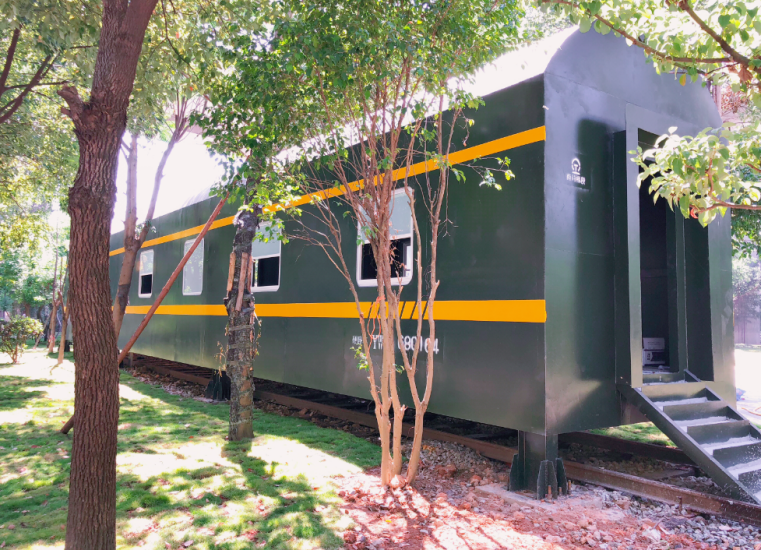 马尾铁路公园是福州市首个以火车为主题的铁路公园。在郁郁葱葱榕树荫下,走过长长的栈道,穿过修整一新的铁路,来到铁路主题公园广场。绿皮火车车厢上还印有“硬卧车”、“南铁福州”等白色字样,仿佛让人回到了20世纪90年代的火车站。在车厢前,还有一处用火车车轮为部件的棕色雕塑。整个广场开阔明净,别具特色。