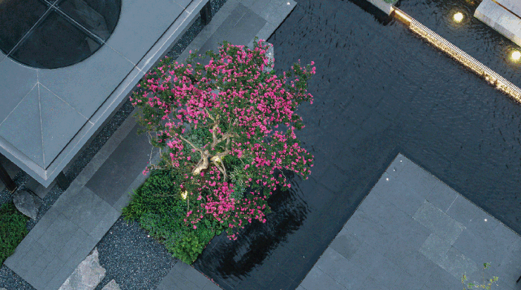 专色大象灰石材,足以体现细节与匠心,景石采用顶级奢石“中国黑老石皮”千里迢迢空运而来,置于水境空间形成山水交融的意境,更显瑧悦高定奢境匠艺。