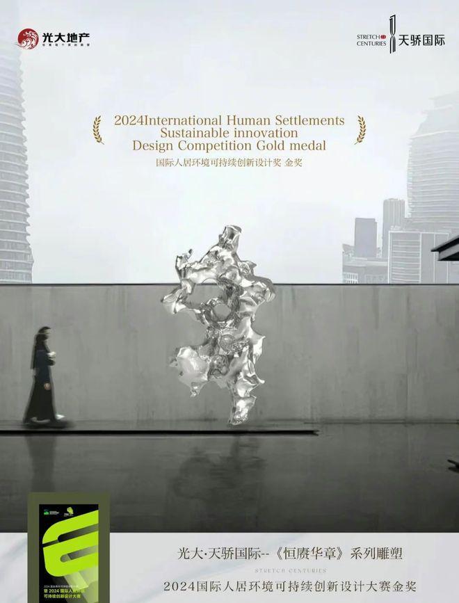 YSE GREEN国际人居绿奖获奖作品:《恒赓华章》系列雕塑获得奖项:2024国际人居环境可持续创新设计大赛 金奖设计亮点:现代材质转译太湖石韵,重构空间演绎东方自然美学。注:对在人居环境可持续发展领域表现卓越的个人、团队或项目的最高认可。