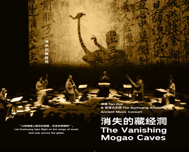 为了追踪遗落在世界各地的敦煌藏经洞古乐谱和古舞谱,谭盾走访了伦敦大英博物馆、国家图书馆、法国国家图书馆等,经过十多年的对敦煌手稿逐步研究、整理、编译,终于将敦煌古谱翻译出来。2024年,“消失的藏经洞”在法国吉美博物馆演出结束后,谭盾被法国文化部授予“艺术与文学军官勋章”。吉美博物馆馆长Yannick Lintz说:“谭盾的作品体现了音乐作为一种通用语言的力量。他对融合文化的激情和对保护中国古老音乐传统的奉献,极大地丰富了全球文化。”