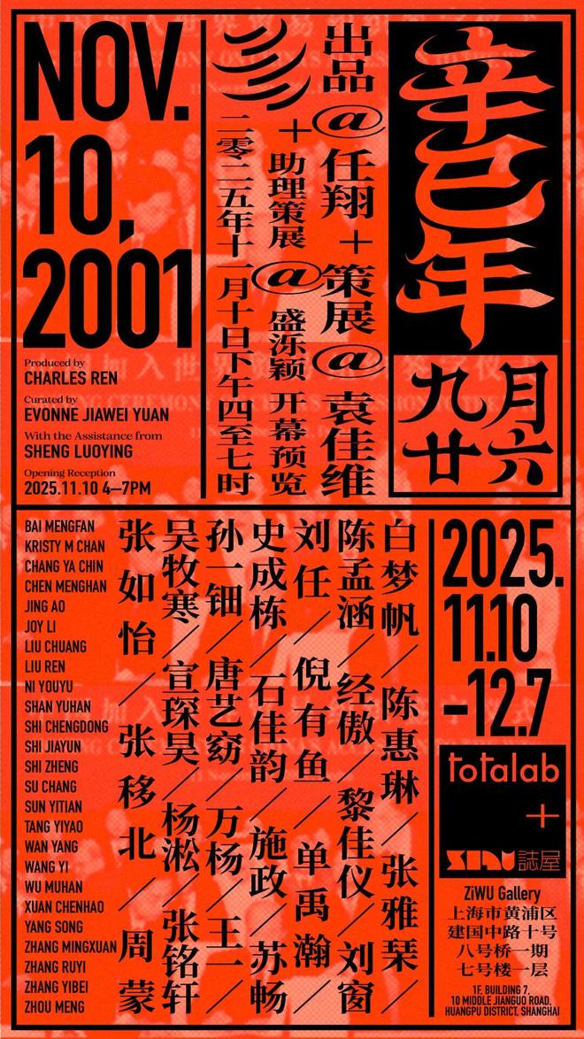 与石库门建筑带来的神秘氛围不同,在工业遗存改造后的ZiWU 誌屋空间,将于11月10日迎来一场特别的展览“NOV. 10, 2001”。